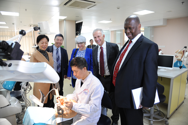 On March 10, 2018, a 4-member delegation includes Jessica Hilburg John McIntosh, deputy deans of the College of Dentistry, New York University, etc visited GXMUCS. The delegation received a warm welcome from Prof. Zhou Nuo, Vice President Dean of GXM