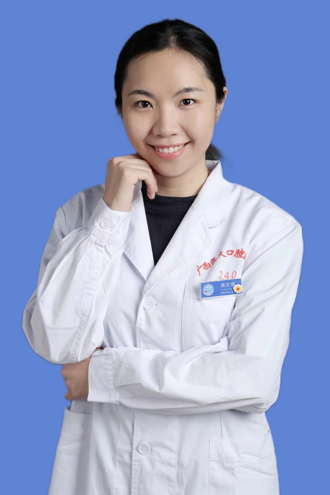 中共党员,副主任医师,工口实验室 儿童口腔科副主任(主持工作),儿童口腔医学教研室副主任(主持工作),口腔医学博士(在读)。中华口腔医学会镇静镇痛专委会青年委员,广西口腔医学会儿童口腔医学专委会副主任委员,广西优生优育协会孕妇及儿童口腔疾病防治分会副会长,广西预防医学会口呼吸防治专委会常委,广西自治区级课程思政教学名师,广西医学会医疗事故技术鉴定专家库成员,广西健康科普专家库成员。